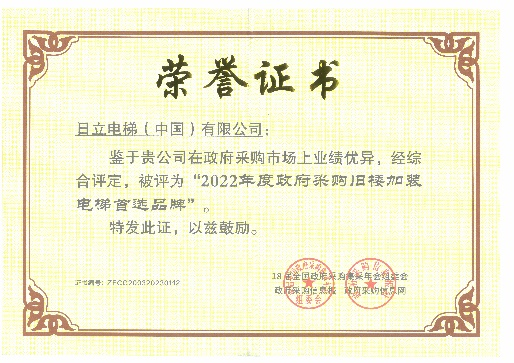 日立电梯获得2022年度政府采购电梯首选品牌、政府采购旧楼加装电梯首选品牌