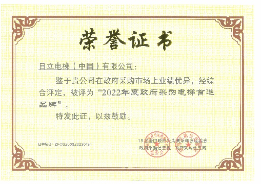 3月,《政府采购信息》报联合政府采购信息网颁发了18届全国政府采购集采年会系列奖项,日立电梯蝉联2022年度政府采购电梯首选品牌、政府采购旧楼加装电梯首选品牌。